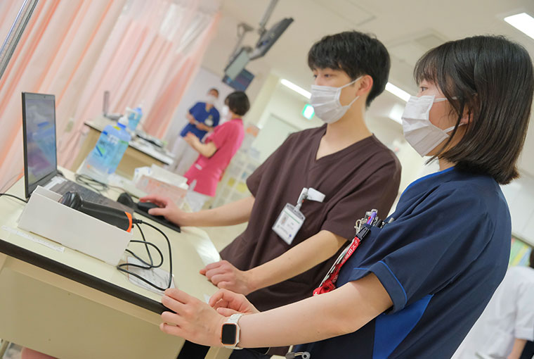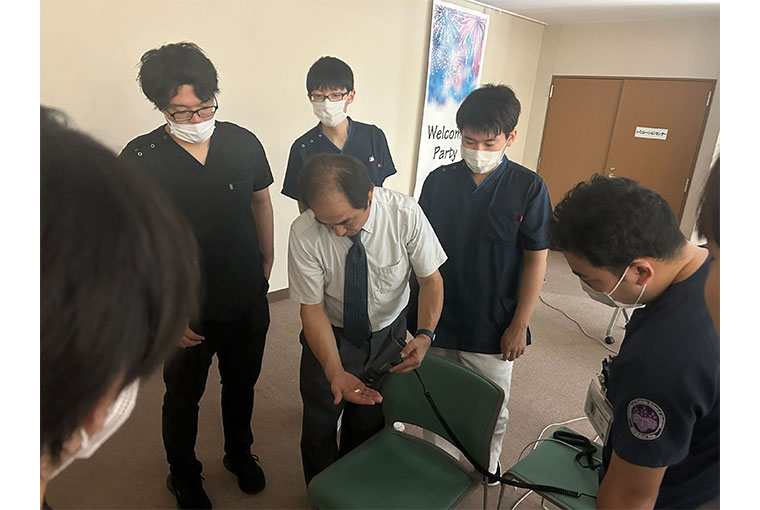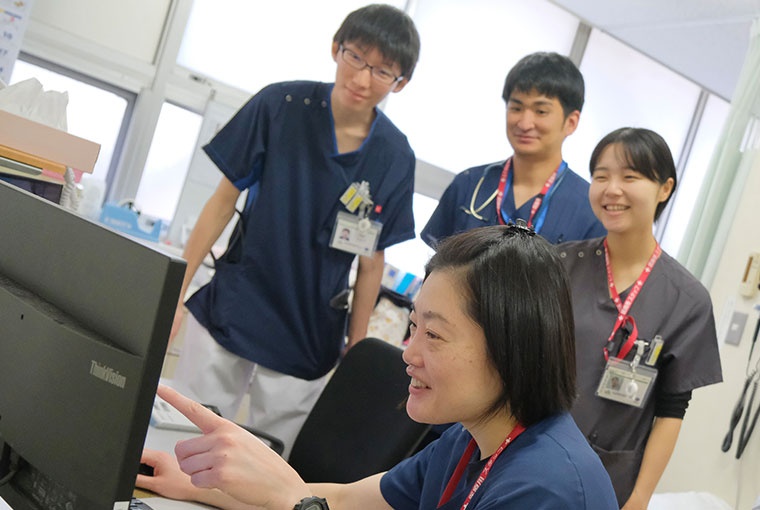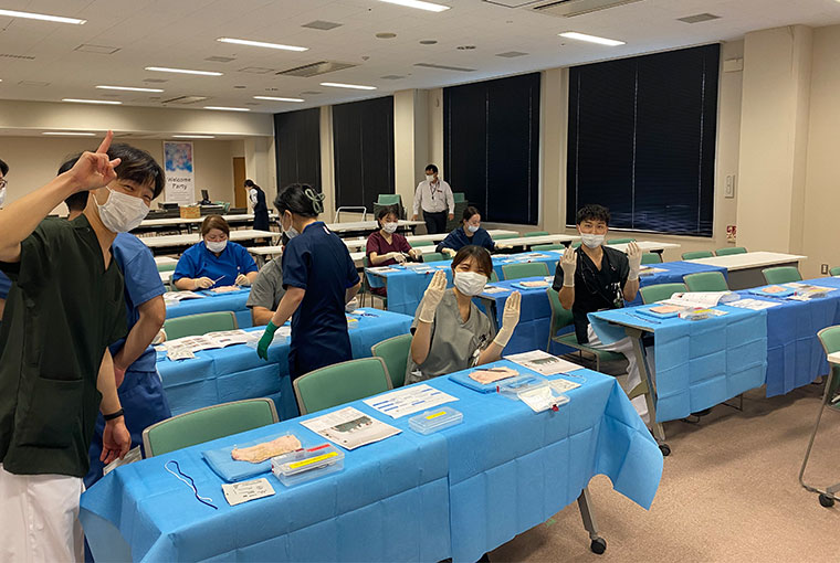 当院では「知っているからできるになる研修」を目標に、救急・外来から病棟診療まで裁量を持ちながら一貫した診療を行うことができますが、実際に見るとその意味がよく分かります。また、見学の学生にはその裁量内で実際に手や足を動かし、百考は一行に如かずを体感していただきます。