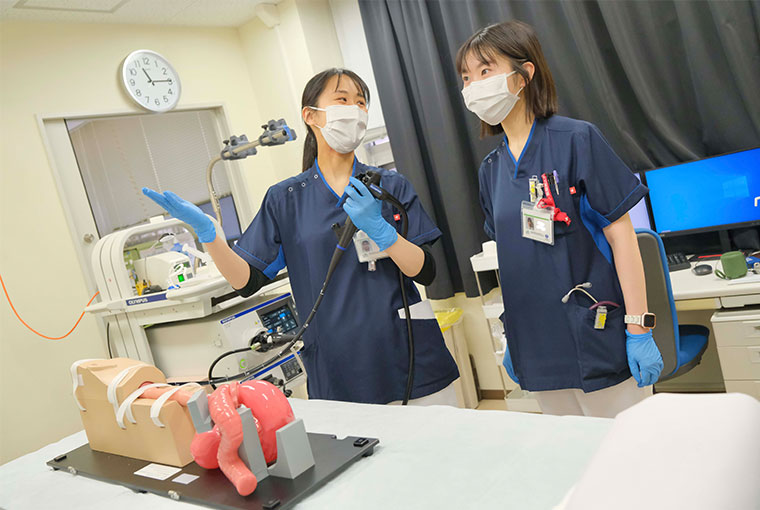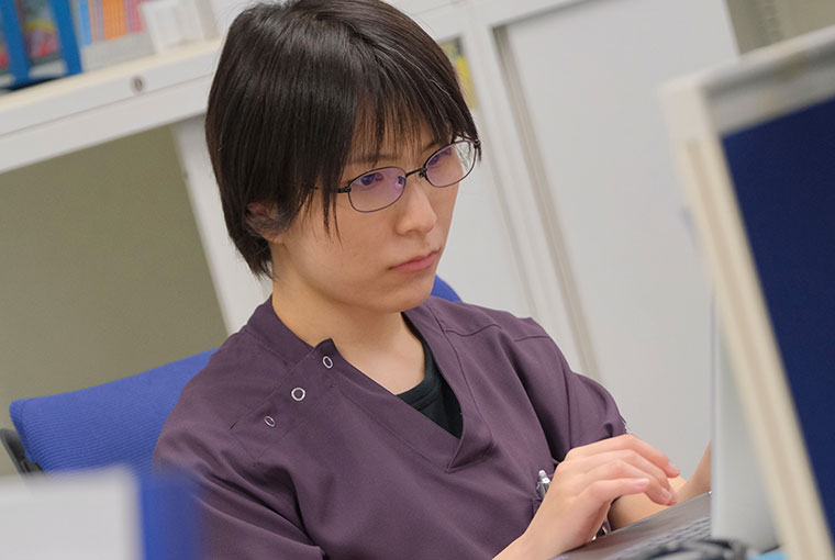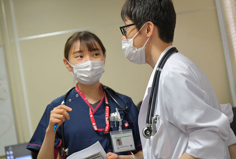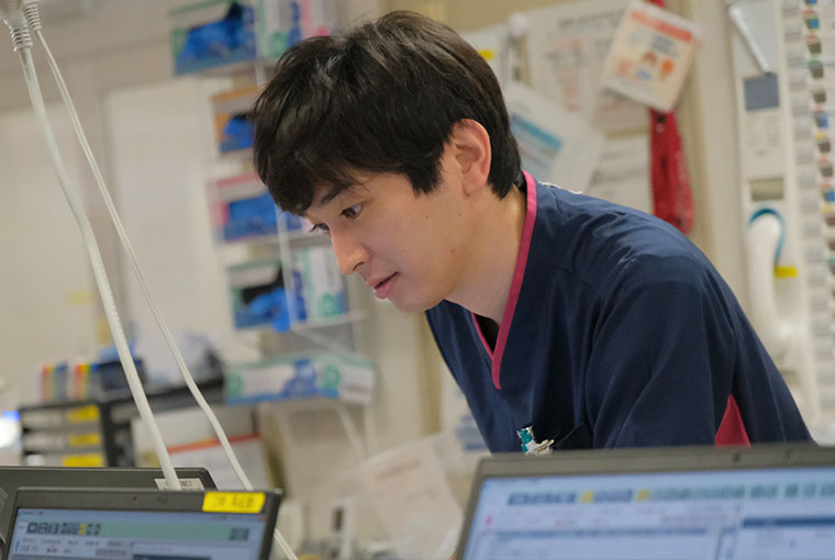 一年目にひとつの科を3ヶ月単位で回れることです。他の病院にはない特徴だと思います。最初の1ヶ月で慣れて、その後、内科であれば治療方針を考えて退院先を整えるまで、外科であれば術後の合併症などに気をつけながら経過を見ていくことができるようになります。ローテが長期であるからこそ、自分で考えて動けるようになると実感しています。そして何より、常に刺激を与えてくれる仲間や先輩がたくさんいることが魅力です。