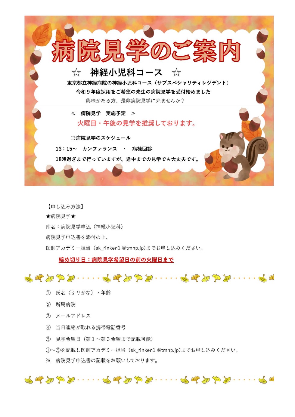 令和7年度10月中旬に病院見学を開始予定です。