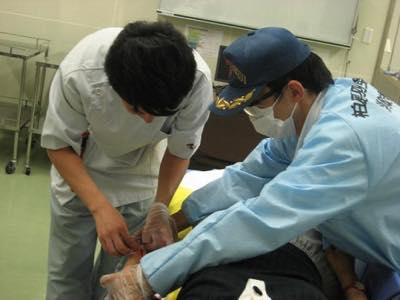 実践を重視した研修で、1年次に必修の内科6カ月、外科3カ月、麻酔1カ月、救急2カ月を回った後、2年次では当院にない産婦人科、小児科、精神科、地域医療については外部での研修を1カ月ずつ行う。それ以外は自由選択として、ほかの研修医とかぶらなければどの科も選択できる。