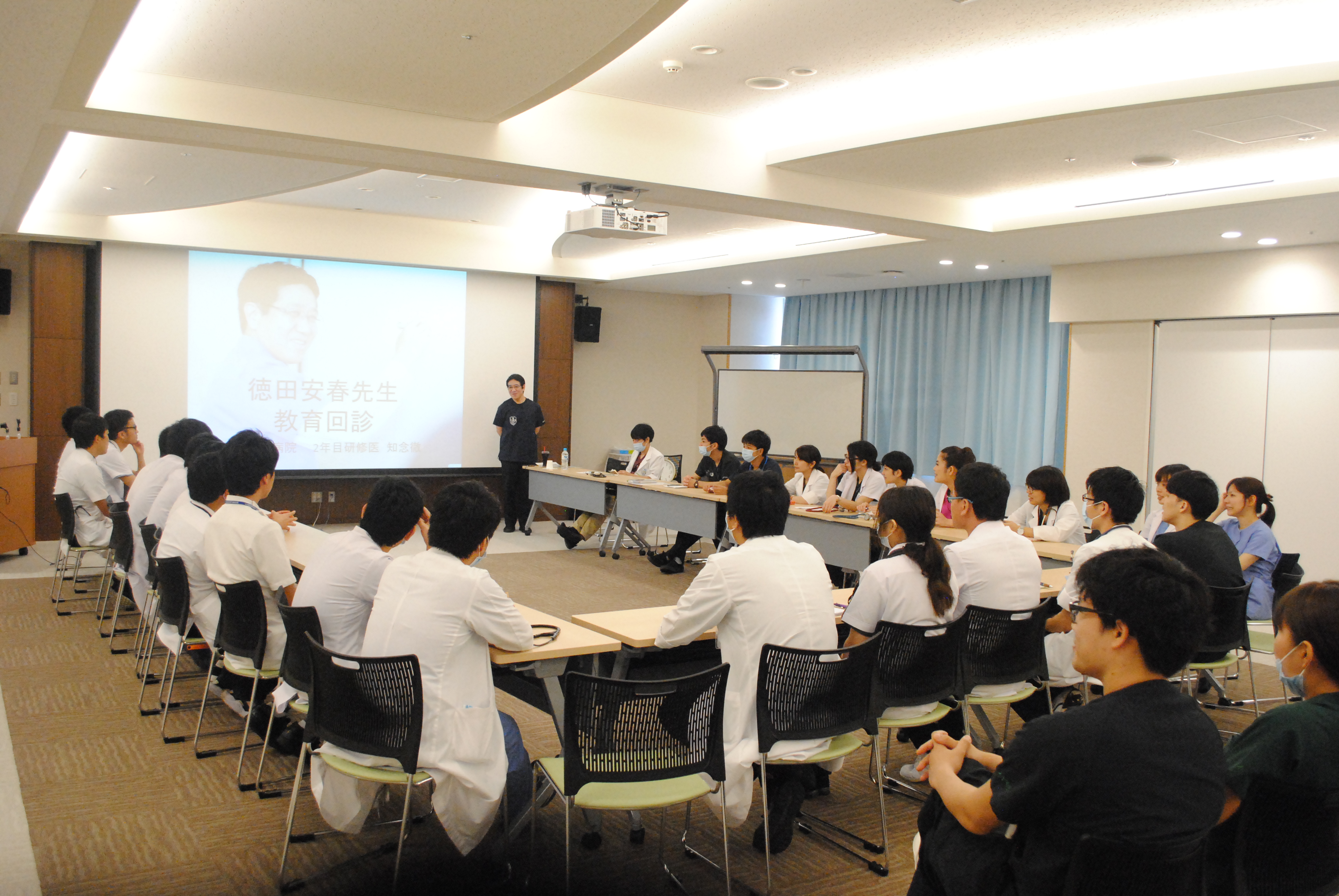 当院の研修プログラムは、群星沖縄(明日の臨床医を育成するために多数の市中臨床研修病院が連携)とRyuMIC(琉球大学病院など)の両グループと連携しながら、魅力的な研修が可能。救急や外来診療を含めた基本的な診療能力を身に付けることを主体に、研修医と指導医が一緒に研修内容の改善を図っていけるような、研修医主体のプログラムである。(1)Common Diseaseの患者数が豊富(入院、外来、救急で各疾患の対応を学べる)(2)総合内科外来でプライマリ・ケア、外来フォローアップの対応が学べる(3)救急専門医による1~3次救急(一部)までの指導が受けられる(4)専門研修へのスムーズな移行(Jump Educationの回避)(5)Evidence-Based Medicine、Case-Based Medicineに基づくフィードバックがある(6)研修医向けにさまざまな学習の場が設けられている