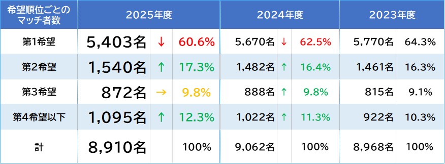 希望順位別 マッチ者数とマッチ率