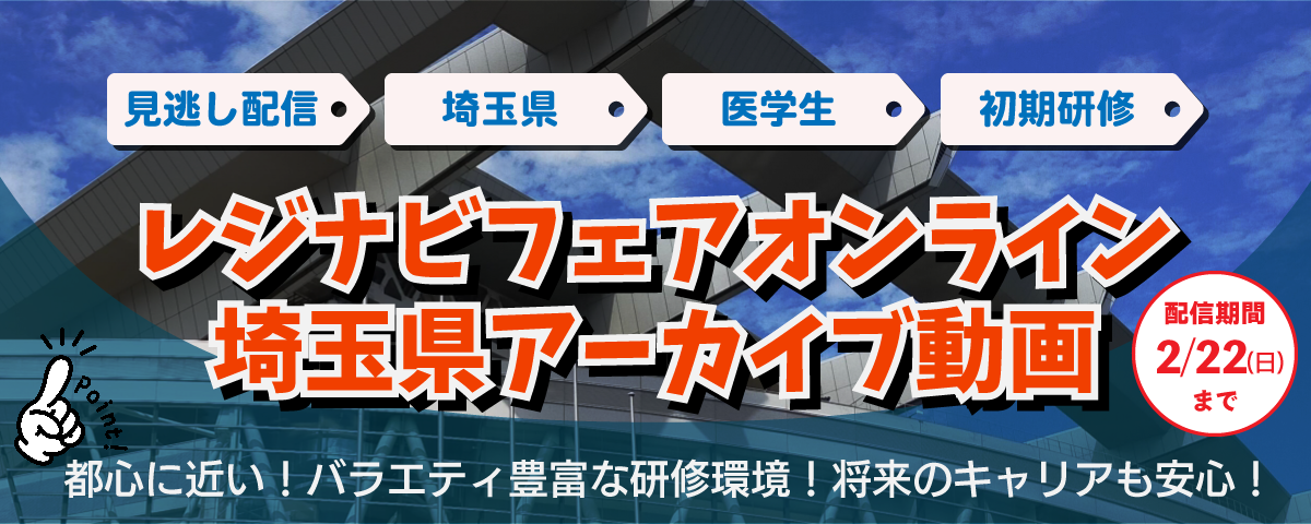 特徴・ローテ・研修環境・サポート体制など、埼玉県16施設の研修情報を一度に効率よく比較できるアーカイブ動画を公開中です。